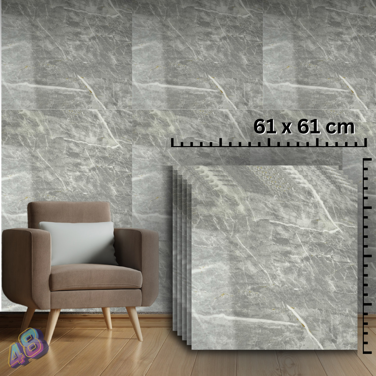 O nouă dimensiune în decorarea interioară cu tapetul autocolant in design de marmură! Dimensiuni XXXXL placa 61cm x 61cm
